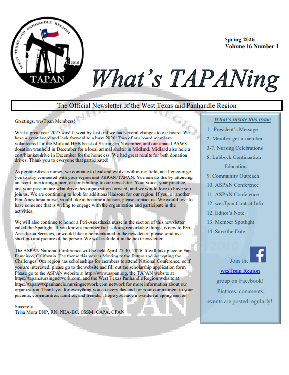 Check out the newest Edition: Spring 2026 Edition of "What's Tapaning"!